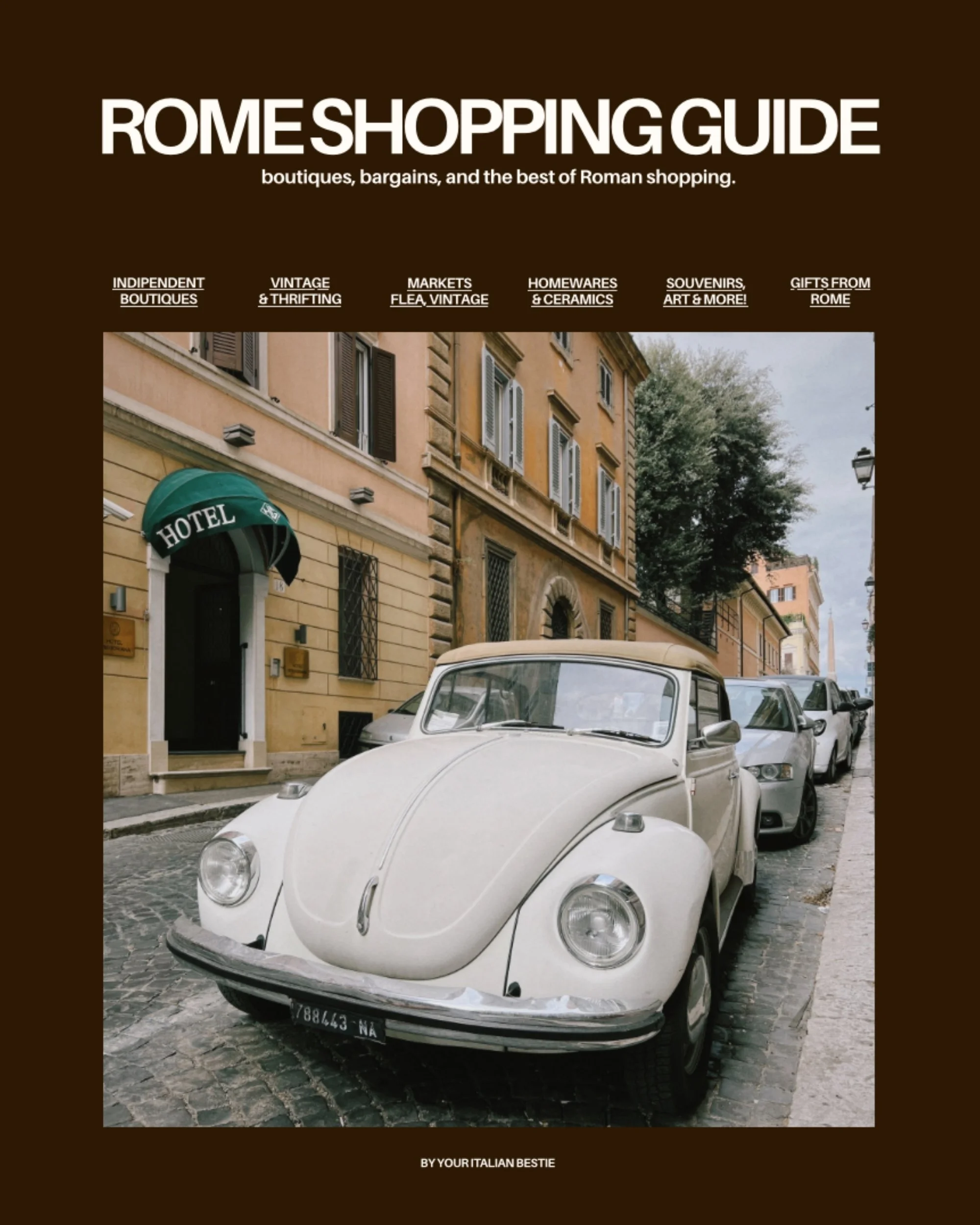 travel like my bestie, not a tourist the insider guides Quick View Rome Insider Guide EUR 26.99 Add to cart Quick View The Ultimate Italy Guide EUR 89.00 Add to cart Quick View Florence Insider Guide EUR 26.99 Add to cart SEE ALL GUIDES New in: Rome Shopping Guide SHOP NOW Download my Italy 101 FREEBIE guide Sign up with your email address to receive my FREE Italy 101 guide, tips on Italy travels, updates on blogpost, product launches and more! All things Italy are awaiting in your inbox 💌 Email Address Take me to Italy We respect your privacy. Thank you!